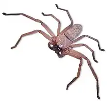 - Neosparassus spp., Badge Huntsman spiders and Shield Huntsman spiders