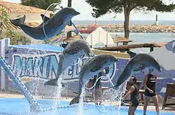 Bottlenose dolphins performing at Marineland Mallorca
