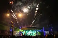 It is organized with support from hundreds of companies and businesses from the city.[16] The event is attended by local authorities and representatives from the organizing parties and attracts hundreds of thousands of locals and foreigners.[17][18][19] The expo offers an amusement park, music-, dance-, cinema- and poetry-related activities, clowns, together with parachuting events, bull races, dog shows, student contests, car shows, zumba and fireworks.[20][21][22][23][24][25] Usually, some nights of the expo are themed with a genre of music (i.e. retro night, cumbia night, rock and roll night).[26][27]
