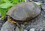 The US state of Michigan is home to two types of lizards, nineteen types of snakes and eleven types of turtles, all members of the class Reptilia.[1] Reptiles are found throughout Michigan, although the only venomous species, the eastern massasauga rattlesnake, is seen only in the Lower Peninsula.[2] Reptiles are cold-blooded, and so usually pass the cold winters of Michigan in frost-free areas, such as burrows (for snakes and land-dwelling turtles) or the bottoms of lakes and streams (for water-dwelling turtles). Most reptiles in Michigan are protected by state law, but many are still at risk due to human encroachment on their habitats, the draining of wetlands and, in the case of snakes, indiscriminate killing by fearful humans.[3][4] In 1995, the painted turtle was named as Michigan's state reptile.[5]