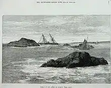 The shipwreck of the Boyne off the Îles Molène, Brittany, 1875