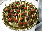 This is a list of strawberry dishes, foods and beverages, which use strawberry as a primary ingredient. Several desserts use strawberries as a main ingredient, and strawberries are also used as a topping on some foods, such as French toast, waffles and pastries.