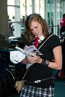 Woman reading a print volume of Megatokyo at SDCC 2008