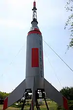 ![]() The Little Joe 1 launch vehicle with Mercury capsule, August 1959. | |