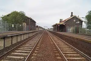 On 25 October 1970, the newly duplicated the line from Werribee to Little River was opened, and the goods siding closed.[1][2] In 1972, a crossover at the up end of the station was abolished.[1] On 4 June 1981, the newly duplicated line to Lara was opened, and a second platform (Platform 1) was provided.[1][2]