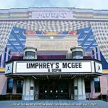 Live at the Murat is the fourth live album by American progressive rock band Umphrey's McGee, recorded over Easter Weekend at the Murat Centre's Egyptian Room in Indianapolis, Indiana. The album was released October 16, 2007. The album contains favorites such as "Push the Pig", "The Triple Wide", "In the Kitchen", "Nothing Too Fancy", and "Padgett's Profile".