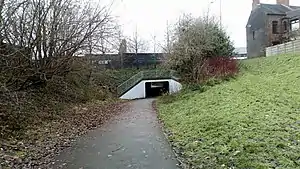 The site of the halt now occupied by a pedestrian underpass.[2]