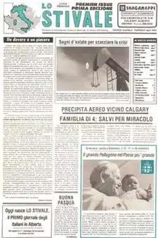 Lo Stivale ("The Boot") was launched by Lo Stivale Graphics, Ltd., of Calgary on April 19, 1984. Written entirely in Italian, it was an independent, fee-based newspaper reaching "the Italian community of Calgary" every other Thursday,[7] covering news, culture and sports (including the local scene).