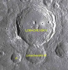 - ↑ "Lobachevskiy (crater)". Gazetteer of Planetary Nomenclature. USGS Astrogeology Research Program.