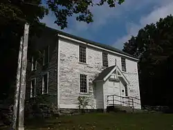 The Long Society Meetinghouse is a historic church building at 45 Long Society Road in Preston, Connecticut. It is one of only about a dozen surviving colonial "broad side" meeting houses, and is the last example surviving in Connecticut that has not been altered from that configuration by the addition of a tower or relocation of its entrance or pulpit.[2] The meeting house was built from 1817 to 1819 on the site of an earlier meetinghouse, incorporating some elements of the earlier building. The meeting house was used both as a church and for civic functions, the reason for its plain, not overtly religious appearance.[2] The building was added to the National Register of Historic Places in 1976.[1]