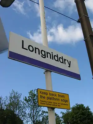 Longniddry railway station is located at the southeast corner of the coastal village of Longniddry, East Lothian, Scotland. The station is on the East Coast Main Line, 13+1⁄4 miles (21.3 km) east of Edinburgh Waverley, and is served by stopping passenger trains on the North Berwick Line.