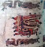 A clay vessel that is of particular interest was discovered at Los Naranjos. The vessel, in comparison with other pottery found at the site, is large and extraordinarily decorated. The remaining fragment is 24.4 cm high and the rim appeared to have a diameter of about 23 cm. The decoration of the pottery is in black and red with the base of the vessel being orange. The designs depict "dancing figures" which is a common theme of art from the time period. The figures are seen in a cave. Archaeologist and historians attribute the setting of the cave as part of a common motif, incorporating ideas of the first humans and genesis of humankind. Nielsen and Brady believe that a deity, represented by a crocodilian figure outside the cave, is a symbol of fertility and was believed to preside over the genesis of mankind.
