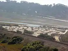 Los Peñasquitos Marsh Natural Preserve and Lagoon is a coastal marsh in San Diego County, California, United States situated at the northern edge of the City of San Diego, forming the natural border with Del Mar, California.[1] This bar-built estuary (a lagoon separated from the ocean by a mouth bar, a typical estuary for California[2]), previously called The Soledad Lagoon, divides a colony of the endangered Pinus torreyana on a narrow coastal strip.[3] Three streams empty into the lagoon: Carroll Creek, Carmel Creek (also known as the Carmel Valley Creek), Los Peñasquitos Creek with a total drainage basin area of 95 square miles.[4]