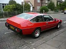 The Lotus Éclat (Type 76 and Type 84) is a sports car built from 1975 to 1982 by British automobile manufacturer Lotus Cars. It was based on the Elite but had a fastback body style which offered more practicality with storage in the boot (trunk), albeit with less headroom above the rear seats. The car was initially to be called the "Elite Coupe".[2] The lower half of the fibreglass bodywork was actually identical to that of the Elite.[3]
