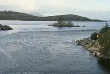 Lough Conn (Irish: Loch Con, meaning 'lake of the hound')[2][3] is a lake in County Mayo, Ireland. With an area of about 48 square kilometres (19 sq mi), it is Ireland's seventh largest lake.[1] With its immediate neighbour to the south, Lough Cullin, it is connected to the Atlantic Ocean by the River Moy. Lough Conn is noted for its trout and salmon fishing.[4] The ruins of a priory exist at Errew Abbey.
