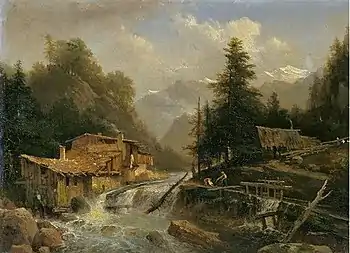 He was a prolific painter who travelled widely to work en plein aire; visiting the south of France, Savoy, Italy (which had a significant effect on his work), Belgium and the Tyrol. He strove to give his landscapes a historical feeling, in the Romantic style.