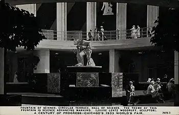 She is most known for the sculpture she designed for the Fountain of Science at the Century of Progress 1933-1934 World's Fair in Chicago, located in front of the main entrance to the Hall of Science. The sculpture, known as Science Advancing Mankind, depicted an abstract robot form nudging a male and female figure forward, which exemplified the fair's themes of scientific and technological progress. After the fair, in 1935, she donated the sculpture to Joliet Township High School, now Joliet Central High School, where students dubbed it the "Steelman" and it served as the school team name and mascot.[4]