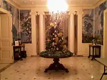Main foyer at Louisiana Governor's Mansion with Mardi Gras tree on display