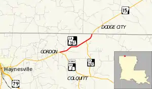 La 161—From a junction with La 2 "Alt" at or near Gordon northeast to the Arkansas state line.