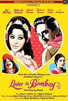 Love In Bombay is a 2013 Indian Hindi-language romantic comedy film produced and directed by Joy Mukherjee. The film was originally made in 1971 and starred Ashok Kumar, Kishore Kumar, Joy Mukherjee, Waheeda Rehman, Rehman. It is the third film of Mukherjee's Love In trilogy, includes Love In Simla and Love In Tokyo. Music director duo Shankar–Jaikishan had composed music for this film which features songs by the legend artists of golden era like Mohammed Rafi, Kishore Kumar, Asha Bhosle. Due to lack of funds this movie couldn't release in its own time. After Joy Mukherjee's death, his son Toy had put in efforts and made arrangements of the release of the movie.[1][2][3][4]