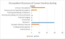 Occupation structure of the Lower hardres community concerning both males and females obtained from the 1881 census