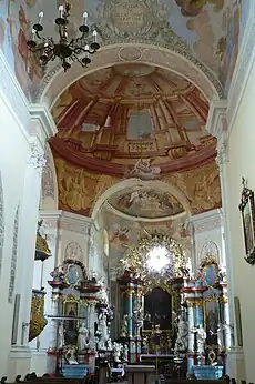 Lubiń is the site of the Church of the Nativity of the Blessed Virgin Mary. The present structure dates from the 18th century but rests on 12th century Romanesque foundations, and other Gothic structural elements. A number of sarcophagi are incorporated in the nave and nave chapel, notably the tombs of Władysław III Spindleshanks and the abbot Bernard Wąbrzeźno. The Baroque decor includes stalls with integrated work by Jan Jerzy Urbański.