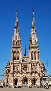 Luján is best known for its large neo-gothic Basilica, built in honor of the Virgin of Luján, the patron saint of Argentina. Every year, more than six million people make pilgrimages to the basilica,[1] many walking there from Buenos Aires. The city is known as La Capital de la Fe (Capital of the Faith). It is a popular day-trip for non-believers too, with abundant grill restaurants (like most places in Argentina) and souvenir shops with kitsch religious memorabilia.