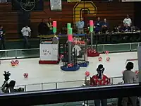 Lunacy is the game for the 2009 FIRST Robotics Competition. Announced on January 3, 2009, the name and some of the features of the game honor the 40th anniversary of the first human mission to the Moon (Latin: Luna). It is FRC's 18th game.[4] This is the first FRC competition to use the cRIO Mobile Device Controller control system from National Instruments.[5] The driver station introduced for 2009 was the Kwikbyte DS, which was replaced in 2010 by the Classmate PC.