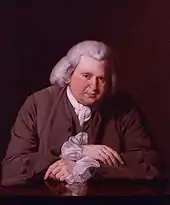 While the society's meetings provided its name and social focus, however, they were relatively unimportant in its activities, and far more activity and communication took place outside the meetings themselves – members local to Birmingham were in almost daily contact, more distant ones in correspondence at least weekly.[1] A more loosely defined group has therefore been identified over a wider geographical area and longer time period, who attended meetings occasionally and who corresponded or co-operated regularly with multiple other members on group activities. These include Joseph Pickford, Richard Kirwan,[9] John Smeaton,[10] Henry Moyes,[10] John Michell,[11] Pieter Camper,[10] R. E. Raspe,[10] John Baskerville,[6] Thomas Beddoes,[12] John Wyatt,[13] William Thomson,[12] Cyril Jackson,[12] Jean-André Deluc,[14] John Wilkinson,[15] John Ash,[14] Samuel More,[16] Robert Bage,[17] James Brindley,[16] Ralph Griffiths,[16] John Roebuck,[16] Thomas Percival,[16] Joseph Black,[16] James Hutton,[16] Benjamin Franklin,[5] Joseph Banks,[18] James Lind,[19] William Herschel,[18] Daniel Solander,[18] John Warltire,[18] George Fordyce,[18] Alexander Blair,[18] Samuel Parr,[18] Louis Joseph d'Albert d'Ailly, William Emes, the seventh Duke of Chaulnes,[18] Barthélemy Faujas de Saint-Fond,[18] Grossart de Virly,[18] Johann Gottling.[20] and Joseph Wright.[21]