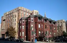 Luther Place Memorial Church is a congregation belonging to the Evangelical Lutheran Church in America.[2] The neo-Gothic church building in Thomas Circle in Washington, D.C., was designed by architects Judson York, J. C. Harkness, and Henry Davis and constructed in 1873 as a memorial to peace and reconciliation following the American Civil War. Its original name was Memorial Evangelical Lutheran Church. The Luther Monument is situated in front of the church. The statue is a replica of the centerpiece of the Luther Monument in Worms, Germany, and was given to the church in 1884 by German emperor William I.