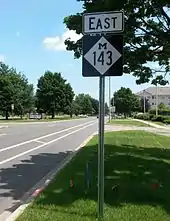 - ↑ University Region Staff (2013). M-143 Reassurance Marker at Lansing–East Lansing city line. East Lansing: Michigan Department of Transportation. Retrieved July 9, 2013 – via Wikimedia Commons.