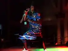 M.I.A.'s stage performances are described as "highly energetic" and multimedia showcases, often with scenes of what Rolling Stone critic Rob Sheffield describes as "jovial chaos, with dancers and toasters and random characters roaming the stage," bringing various crowds with interests in art, music and fashion.[114] Camille Dodero, writing in The Village Voice opined that M.I.A. "works hard to manifest the chaos of her music in an actual environment, and, more than that, to actively create discomfort, energy, and anger through sensory overload."[192] Her role as an artist in and voice lender to the subaltern is appreciated by theorists as having brought such ideas to first world view.[193][194][195][196] USA Today included her on its list of the 100 Most Interesting People of 2007 and she was named one of Time Out's 40th Birthday London Heroes in 2008. The same year, Esquire listed M.I.A. as one of the 75 Most Influential People of the 21st century, describing her as the first and only major artist in world music, and in 2009 she was cited in Time magazine's Time 100 as one of the world's most influential people for her global influence across many genres.[33][193][197][198] In December 2010, USA Today listed M.I.A. at number 63 on its list of the "100 People of 2010".[199] M.I.A. placed number 14 on Rolling Stone's Decade-End Readers' Poll of "Top Artists Of The Decade."[200] Rolling Stone named her one of eight artists who defined the 2000s decade.[201]