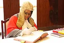 She was appointed Chief Justice of The Gambia in August 2013.[5][13] Her appointment was widely seen as an inspired choice as she is seen by the international community as an experienced and independent minded judge.[14] She served until her abrupt removal in February 2014. There was no official reason given by the Gambian government as to the cause of dismissal.[15][16][17] It is suspected by many in the international judicial community that her dismissal was tied to differences over a human rights abuse case[18] and her insistence on judicial independence.[19]