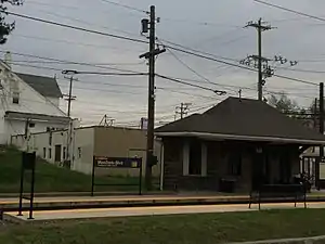 Between the MacDade Boulevard and Sharon Hill stops, CSX's Philadelphia Subdivision freight line bridge crosses over the tracks.[1] The line dips very low under the freight line as a result, flooding occurs in the underpass with shuttle buses between the two stations being used as substitutes for trolley cars.