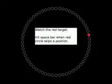The Mackworth Clock is an experimental device used in the field of experimental psychology to study the effects of long term vigilance on the detection of signals. It was originally created by Norman Mackworth as an experimental simulation of long term monitoring by radar operators in the British Air Force during World War II.[1] The device has a large black pointer in a large circular background like a clock. The pointer moves in short jumps like the second hand of an analog clock, approximately every second. At infrequent and irregular intervals, the hand makes a double jump, e.g. 12 times every 30 seconds. The task is to detect when the double jumps occur by pressing a button. Typically, Mackworth's participants would do this task for two hours.[2] The Mackworth Clock was used to establish one of the fundamental findings in the vigilance and sustained attention literature: the vigilance decrement (signal detection accuracy) decreases notably after 30 minutes on task. The test continues to be used today in vigilance research in various forms, including computer-displayed versions.[3]