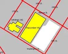 Irving E. Macomber Vocational Technical High School was a vocational public high school in Toledo, Ohio, United States, from 1938[1] to June 1991. It was named for the man who helped develop the city's schools and parks, and who used to live on the property the school was built on.[1] Macomber served the entire city and was part of the Toledo Public School District. The school began as Vocational High School in the original Toledo high school in 1927[2] before moving to its location on Monroe Street in 1938.[3] In 1959, the school became joint-operational with Whitney High School, an all-girls vocational school located just across 16th St., and the two buildings came to be known as Macomber-Whitney.[4] The building still sits on Monroe Street, just northwest of Fifth Third Field.