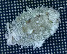 Maconellicoccus hirsutus, (also known as the pink, grape or hibiscus mealybug) is a pest of many plants, trees, and shrubs. It infests hibiscus, citrus, coffee, sugar cane, annonas, plums, guava, mango (although, mango mealybug is more problematic), okra, sorrel, teak, mora, pigeon pea, peanut, grapevine, maize, asparagus, chrysanthemum, beans, cotton, soybean, cocoa, and many other plants. The pest forms colonies on the host plant, and if left undisturbed, the colonies will grow into large masses of white waxy coverings on branches, fruiting structures, leaves, and even whole plants, including large trees.