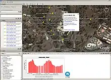 Image from a 2007 "macroscope" demonstration concept from the ICT Division of CSIRO, showing physical data from a Fleck wireless sensor network overlaid on Google topographic imagery