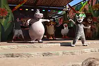 Madagascar Live! It's Circus Time is a 30-minute live show,[62] based on the film Madagascar 3: Europe's Most Wanted. The story follows the characters of Madagascar to a circus, where they try to avoid being captured by the animal control officer Captain Dubois by blending among its artists, performing stunts, singing and dancing.[63] The show opened in 2012, in Everland Resort, in South Korea,[64][65][66] and in 2013 in Heide Park, Germany,[62] and in Gardaland, Italy.[63]