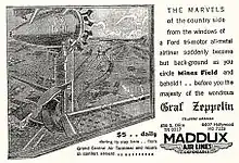 In February 1929 passenger service to Phoenix, Arizona began. Other local short-hop flights were also added. On August 26, 1929 a Maddux Tri-motor, along with other aircraft, escorted the famous LZ 127 Graf Zeppelin airship to Mines Field (now part of Los Angeles International Airport) where it stopped during its around the world flight.[2]