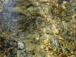 ![]() Water in Madum Lake in 2011. The lake's extremely pure and clear water supports a number of rare aquatic plants, including certain species of Lobelia. | |