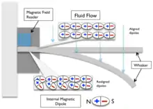 Schematic of a whisker flow sensor developed using thin-sheet magnetostrictive alloys.