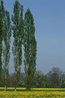 The area, which was one of the most populous sections of the township of Bergen,[8] was referred to as Maisland for 135 years,[9] when in the year 1803, Maisland became known as New Durham, which later on became part of North Bergen, New Jersey.[10] Maisland today constitutes the same area as New Durham did, which is bounded roughly by the beginning of Union Turnpike, Bergen Turnpike, and the Tonnelle Avenue Station of the Hudson Bergen Light Rail.[11] Within its vicinity during Maisland's frame of time was the Three Pigeons Tavern,[12] which stood at the southern fringe of Maisland near the intersection of Tonnelle Avenue and Hackensack Plank Road,[13] and the "Frenchman's Garden". This garden in Maisland, which later became Machpelah Cemetery,[14] was the early source for Lombardy poplar Populus nigra, which spread across the United States.[8][15]