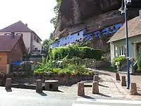The anachronistic rock houses were already drawing crowds by the start of the twentieth century. In 1931 the ground floor ceiling of the Weber house collapsed, and the 88-year-old owner died soon after. The Otterman sisters continued to live in their house. Madeleine, the eldest, died in 1947 aged 89. Catherine, called "Felsekaeth", lived another 11 years.[2] The houses lost their last occupant when Catherine Ottermann died in 1958.[3] They were listed as a historical monument on 20 December 1988.[4]
