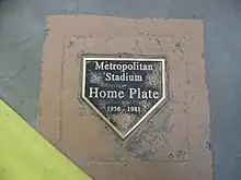 - A plaque embedded in the floor of Nickelodeon Universe, marking the exact spot of home plate at Metropolitan Stadium. [52]