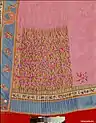 The fengweiqun (凤尾裙) appeared in the Qing dynasty during the Qianlong (r. 1735–96) period no later than 1750.[38] According to author, Shaorong Yang, embroidered fengweiqun with gold threads and made of damask was worn at the end of the Ming dynasty and at the beginning of the Qing dynasty.[43]: 45 It became the most popular style during the Kangxi (r. 1661–1722) and Qianlong period.[44]: 49 The fengweiqun was mostly worn by women who came from wealthy families, but women from less wealthy families may have possibly worn the fengweiqun as a wedding skirt.[44]: 50 This style continued even in the Republic of China period.