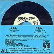 Man or Astro-man? vs. Europa (subtitled "Four Week-Kneed Space Geeks Take on an Entire Continent!") is a Man or Astro-man? 7-inch EP released on Homo-Habilis Records (HH706) in late 1993. It was only pressed on black vinyl,[1] and the turquoise, card-stock picture sleeve folded in such a way as to leave half of the record exposed on the reverse side: