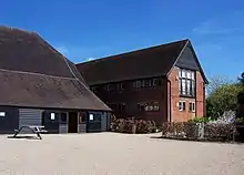The farm buildings date back to the 13th century with the Great Barn the most prominent.[1] The barn is the second largest such structure in Middlesex after another in Harmondsworth.[7] The Great Barn is constructed of English oak from the nearby Ruislip Woods. It was built to a design known as an aisled barn, whereby smaller out-shoots run alongside the main supports underneath one main roof.[3]