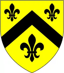 Arms of Fanshawe of Bratton Fleming and of Fanshawe Gate, Derbyshire, granted in 1490 to John Fanshawe of Fanshawe Gate: Or, a chevron between three fleurs-de-lys sable[12]