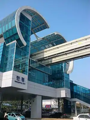 Manpyeong Station is a station of Daegu Metro Line 3 in Bisan-dong, Seo District, Daegu, South Korea.